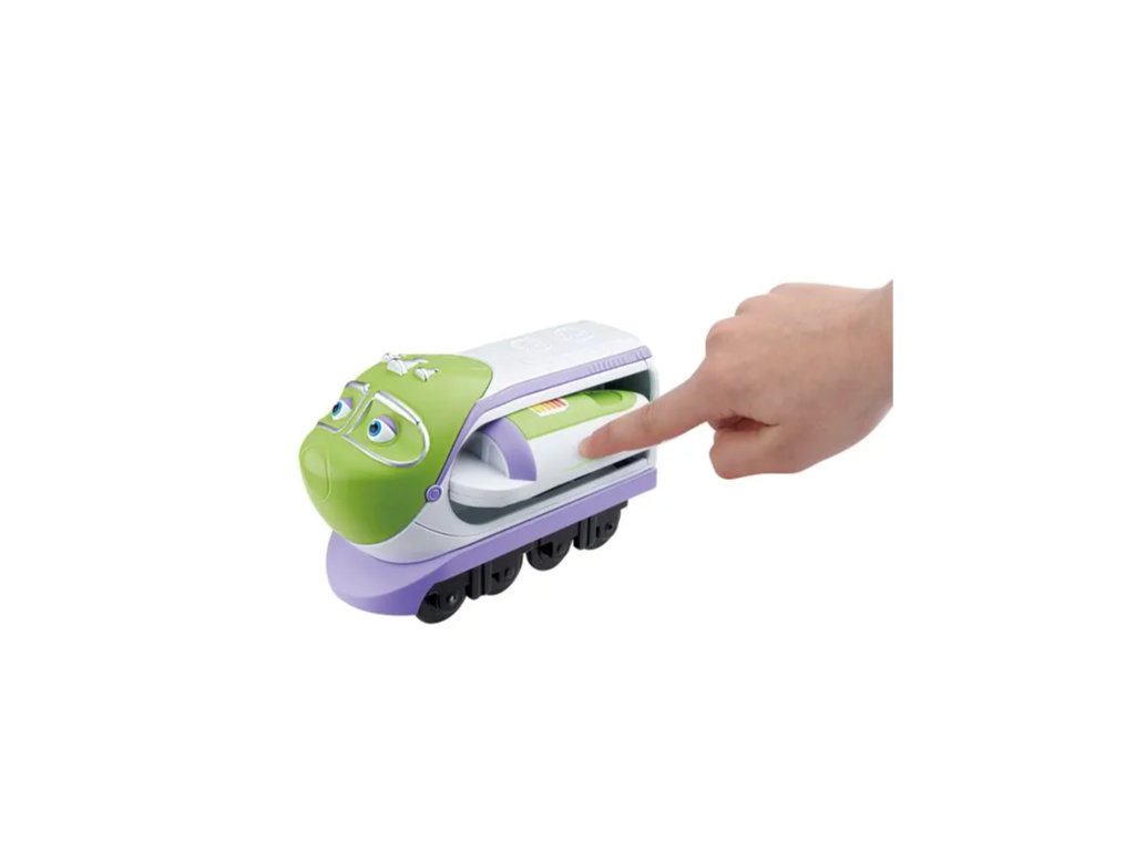 Vláček, vlastně jen mašinka, která je překvapivě veliká. Ne zas tak, že by se nevešla do záchodové mísy, ale větší než třeba na koleje BRIO. Děti potěší hýbací funkce, rodiče zase, že jde o kvalitní výrobek, který nemusí pozítří házet do žluté popelnice.
