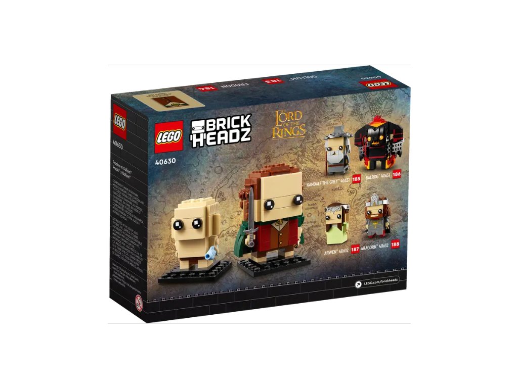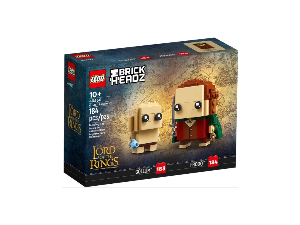 - Sběratelská stavebnice LEGO® BrickHeadz™ Frodo™ a Glum (40630) – zahrnuje figurku Froda v plné LEGO BrickHeadz velikosti s mečem a prstenem a menší model Gluma s rybou