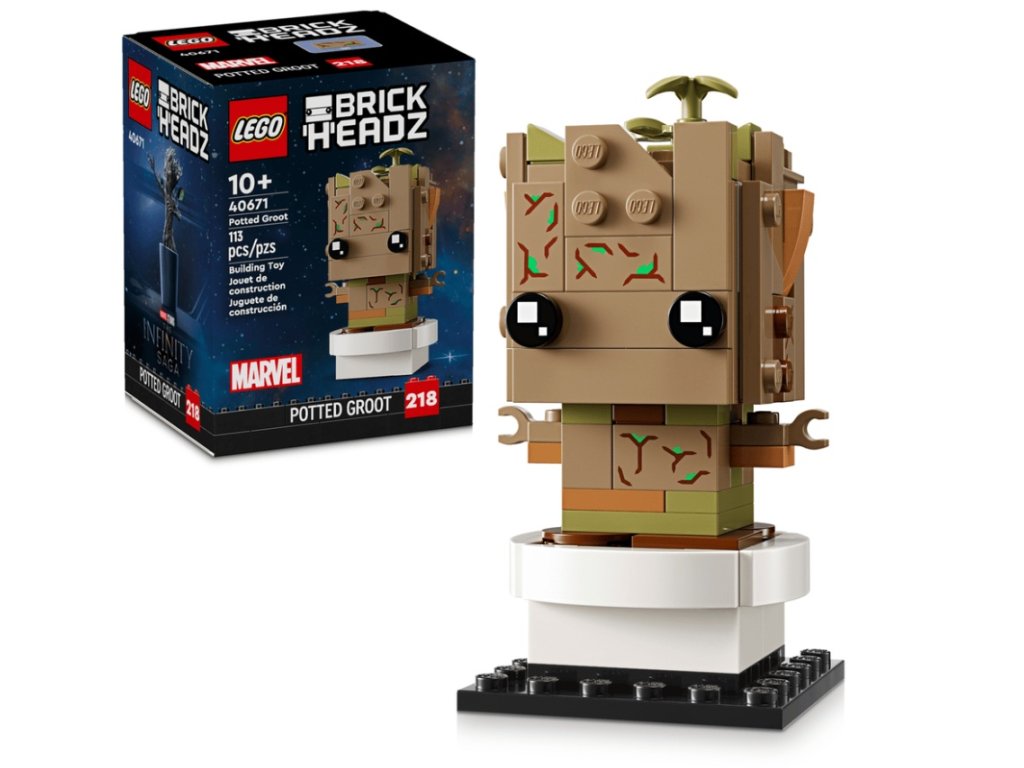 - LEGO® BrickHeadz™ Groot v květináči – Děti od 10 let a fanoušci Marvelu si postaví barevný model malého Groota ve stylu BrickHeadz