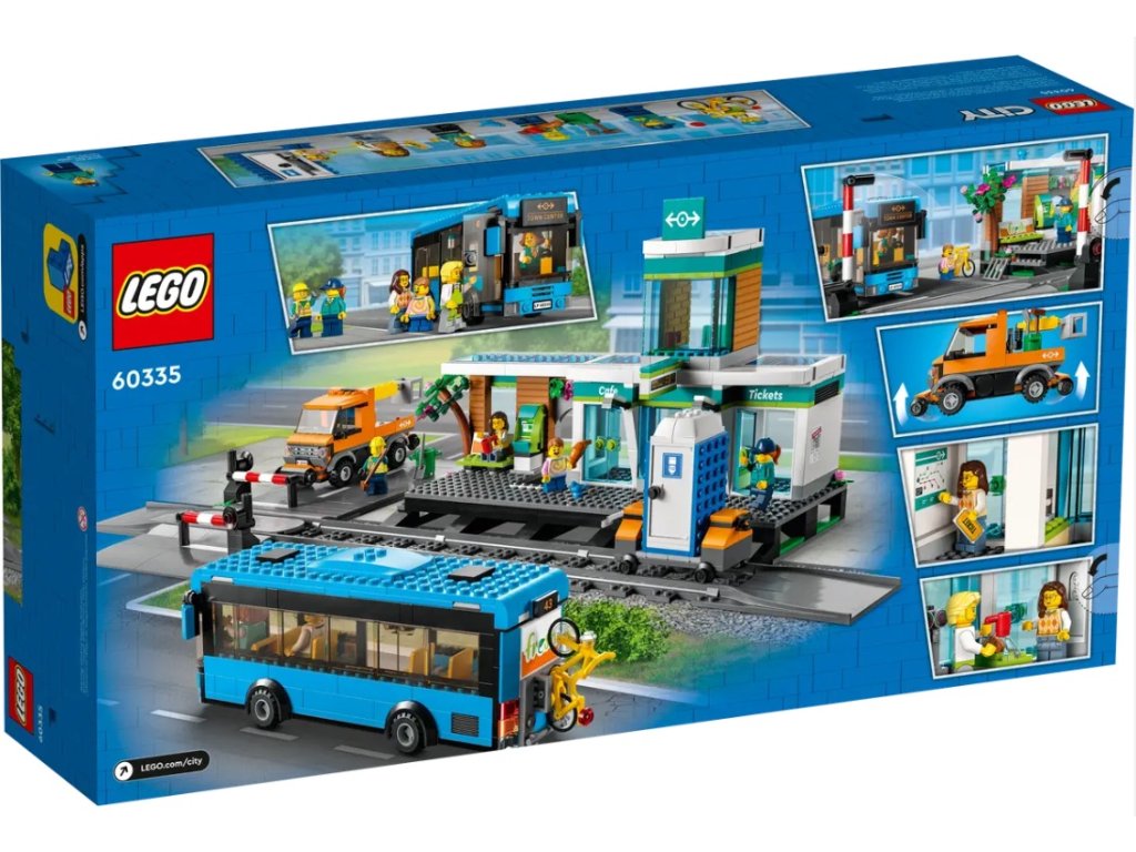Stavebnice LEGO® City Nádraží (60335) doslova překypuje zábavnými prvky. Součástí modelu je pokladna, kavárna, řídicí místnost, nástupiště a koleje kompatibilní se sadami s vláčky LEGO City. Děti se mohou těšit také na autobus, údržbářské vozidlo, které zvládne jízdu po cestě i po kolejích, s mobilním záchodem nebo železniční přejezd s díly silnice pro připojení k dalším modelům LEGO City. Život hraní vdechne hned šestice minifigurek.