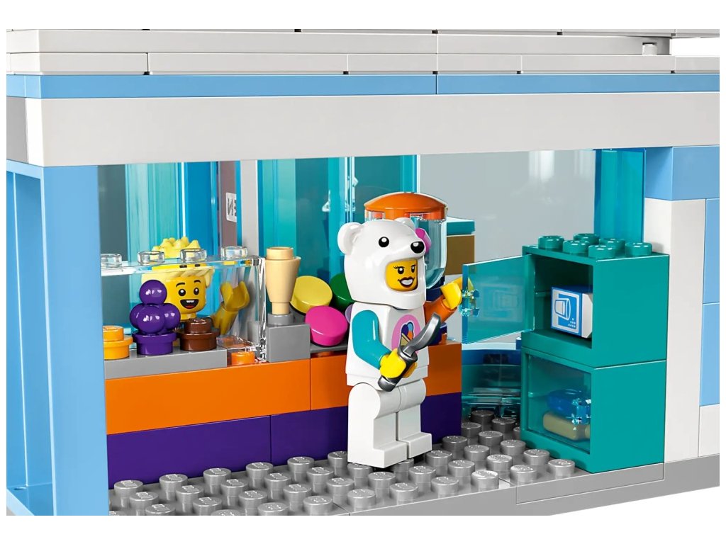- Doplňky pro minifigurky LEGO® – Mezi doplňky najdete mléčný koktejl, telefon, dárek a 2 zmrzlinové kornoutky