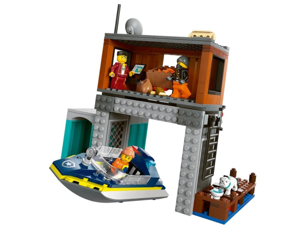 - Hračky úkryt zločinců a policejní člun – Děti se mohou vydat na misi za polapením zločinců s touto herní stavebnicí pro děti od 6 let LEGO® City Policejní rychlý motorový člun a úkryt zločinců