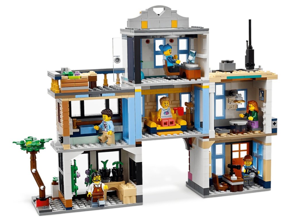 - 3 stavitelské zážitky v 1 sadě – Stavebnice LEGO® Creator 3 v 1 (31141) Hlavní ulice dětem nabízí přehrávání zábavných příběhů ve městě se 3 různými modely: ulicí města, secesním domem a ulicí s trhem