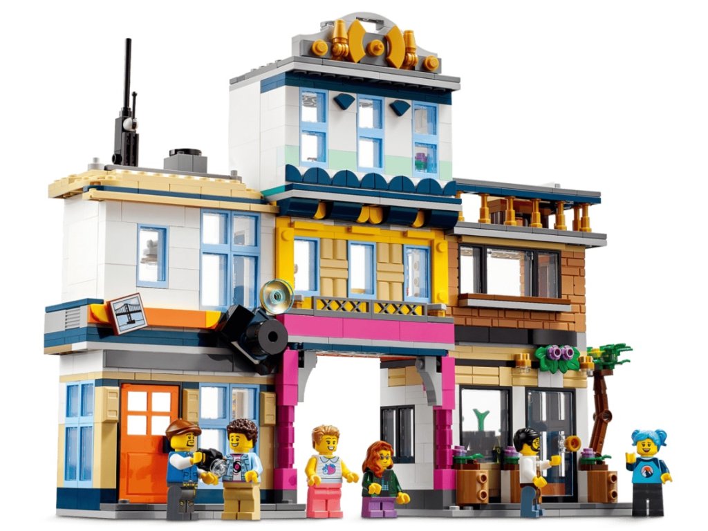 - Nekonečné hraní – Fanoušci LEGO® si můžou postavit a přestavět 3 různé scény z města: ulici s hotelem, obchodem s hudbou a deskami a s kavárnou, nebo 4patrový secesní bytový dům, případně ulici s bránou na trh