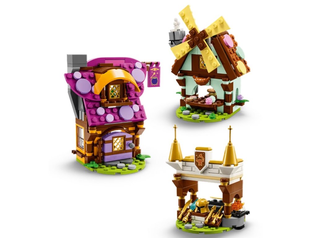- Kouzelné detaily – Děti si zamilují objevování otáčejícího se větrného mlýnu na pekárně, houpajícího se štítu na kouzelném obchůdku a propracované minifigurky Jaydena