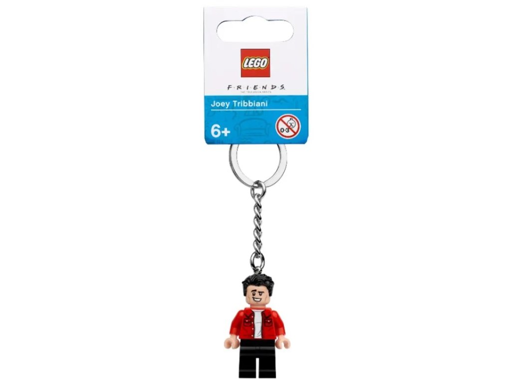 - Tato klíčenka LEGO® Ideas (854119) obsahuje minifigurku Joeyho Tribbianiho připevněnou k odolnému kovovému kroužku a řetízku. Minifigurka je upevněna na kovovém řetízku a nelze ji sundat.
