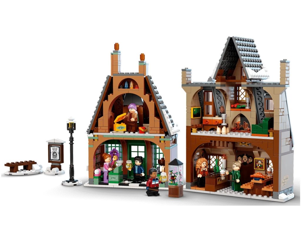 Zasněžené Prasinky jsou do detailu propracované a skvěle poslouží k hraní i na výstavku. V sadě najdete také 6 minifigurek – Harryho Pottera, Deana Thomase, profesorku McGonagallovou, madam Rosmertu, pana Flumea a paní Flumeovou – a navíc spoustu parádních funkcí, nábytků a doplňků, které inspirují děti k přehrávání filmových scén nebo vymýšlení svých vlastních dobrodružství. Nechybí dvoupatrová cukrárna Medový ráj ani hospoda U Tří košťat, takže o zábavu nebude nouze. 3 menší modely pak poskytnou ještě větší porci herní inspirace a možností. Samozřejmě se můžete těšit i na sběratelské prvky: exkluzivní zlatou minifigurku Rona Weasleyho a 4 náhodné kouzelnické karty!