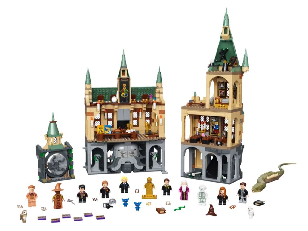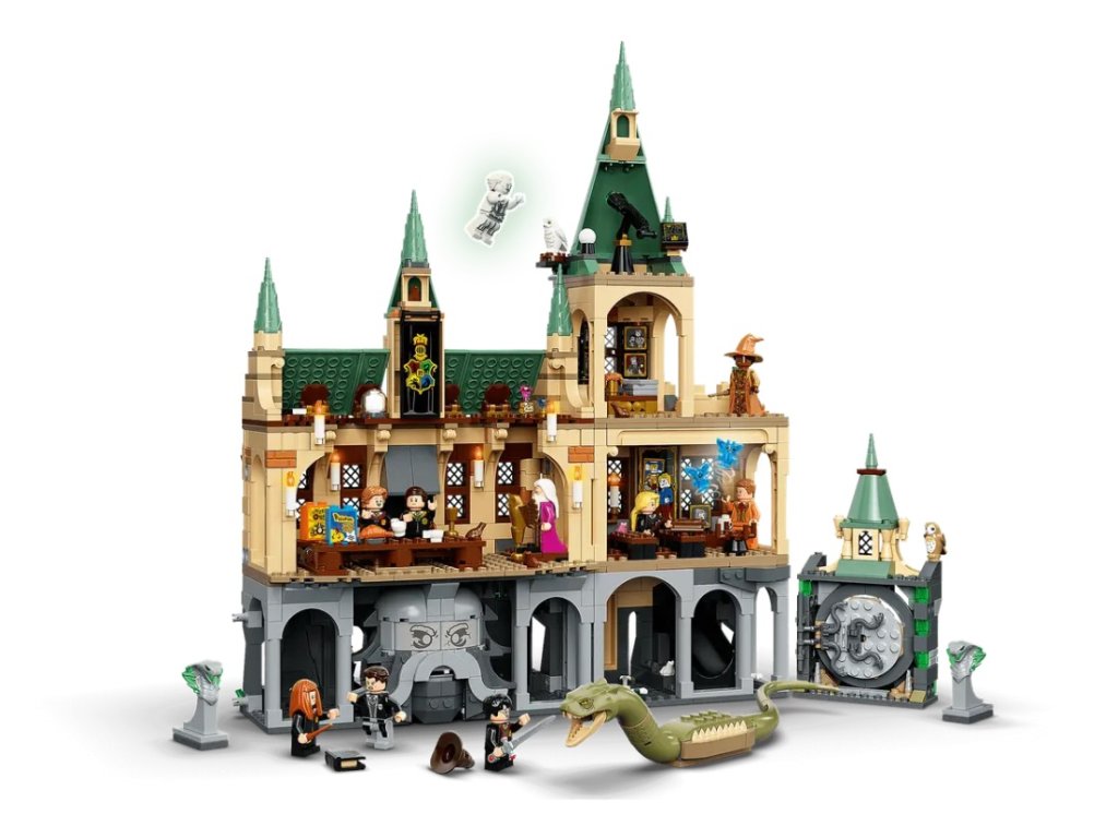 Všestranná stavebnice obsahuje oblíbená místa, kouzelné doplňky a známé postavy z filmů o Harrym Potterovi. Ve Velké síni najdete 2 dlouhé stoly, Brumbálův pultík ve tvaru zlaté sovy a další autentické prvky, například Moudrý klobouk. Stejně jako ve filmech se do Tajemné komnaty dostanete ikonickým kulatým vchodem a nechybí ani velká socha s otevíracími ústy, která odhalí chodbu, jíž se do místnosti dostane bazilišek. Harry Potter, Ginny Weasleyová, Tom Raddle, Colin Creevey, Justin Finch-Fletchley, Lenka Láskorádová, Zlatoslav Lockhart, Albus Brumbál, profesorka Sinistra a Skoro bezhlavý Nick slibují spoustu možností k hraní i vystavení. Můžete se těšit také na sběratelské předměty: exkluzivní zlatou minifigurku Voldemorta, která byla vydána k výročí řady, a 6 náhodných kouzelnických karet.