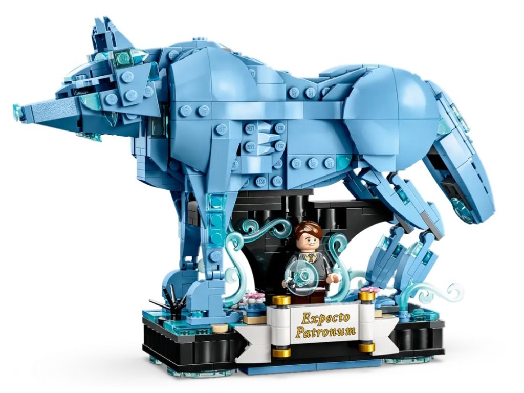 - Patron v podobě jelena – Součástí jsou polohovací nohy, průsvitné světle modré dílky pro přízračný efekt a zabudovaný podstavec na vystavení s ozdobnými prvky a místem pro minifigurku Harryho Pottera