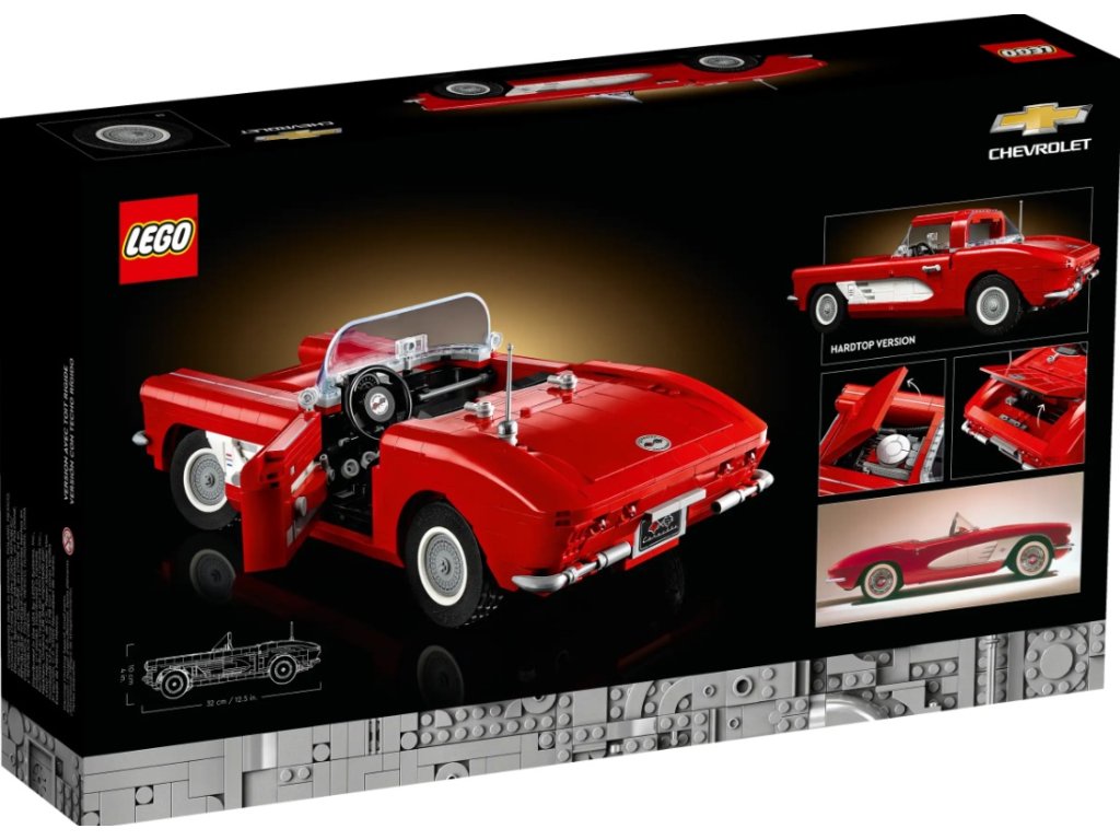 - Co se ukrývá v krabici? – Vše, co potřebujete k stavení propracované repliky sportovního kabrioletu LEGO® Corvette z roku 1961