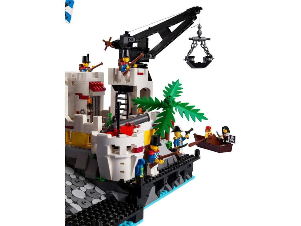 Objevte skryté poklady při stavění kultovní pevnosti kostku po kostce, včetně admirálovy kajuty, vězení pro piráty a mnoha tajných zákoutí. Nakombinujte modulární části místností do různých konfigurací a přehrávejte epické bitevní scény s funkčními děly, 8 minifigurkami a parádním pirátským korábem s látkovými plachtami s potiskem.