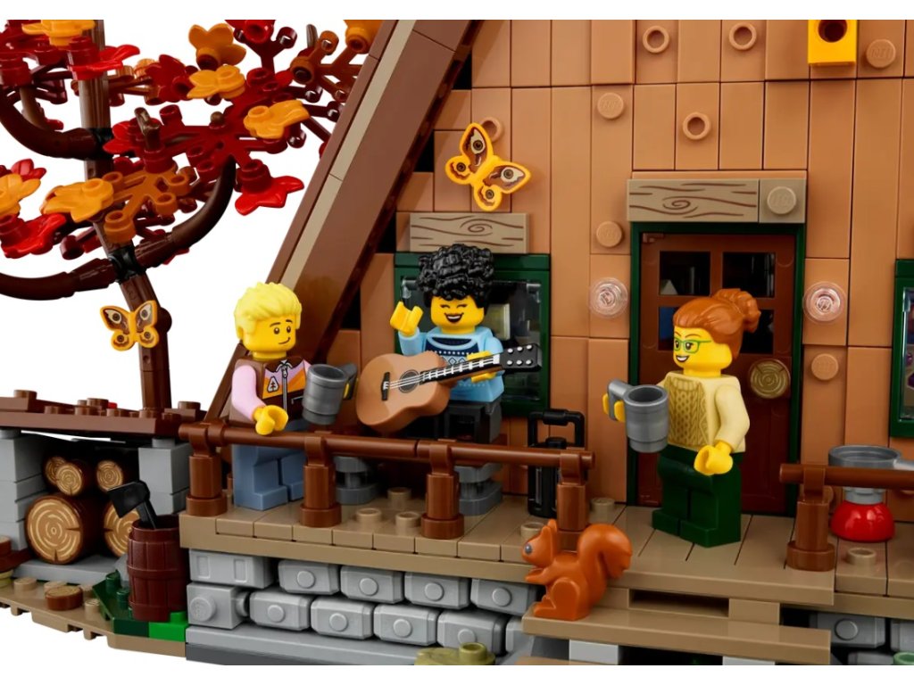 Stavění budov je u nás hned druhé v pořadí z stavbami autíček. A nic s takhle šikmou střechou jiného nemáme. Je to skvělý model, pro náročnější turisty. A ty detaily! Jinde než v LEGO asi neuvidíte veverku pokojně sedět a poslouchat trampské písně...