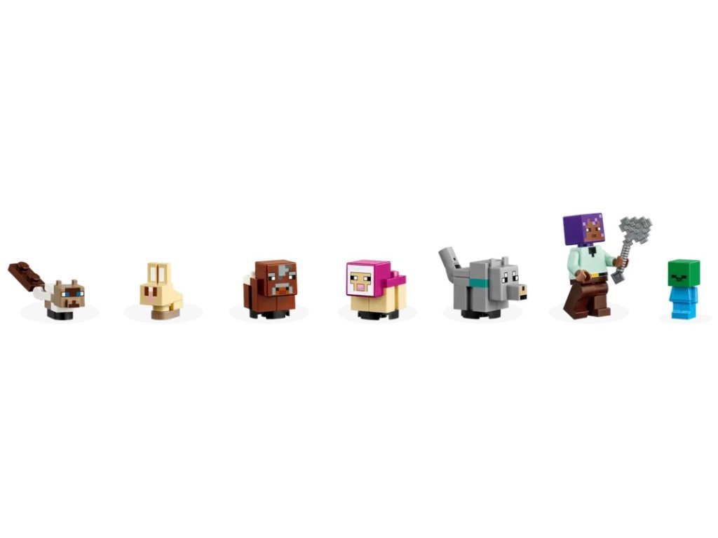 - Mobové ze světa Minecraft® – Objevte mláďata z Minecraftu včetně kotěte, jehněte, vlčího mláděte, králíčka, telátka a dokonce malého zombie. Vůbec poprvé se v řadě LEGO® Minecraft představí postava Efe