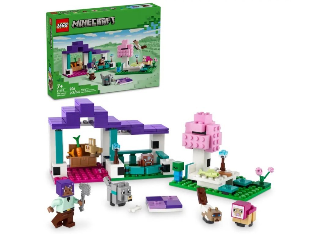 Stavebnice LEGO® Minecraft® (21253) Útulek pro zvířata je všestranný dárek pro milovníky videoher a děti od 7 let. Najdete v ní 6 zvířat ze světa Minecraft, o která se děti mohou starat, a vůbec poprvé se v řadě LEGO Minecraft objeví postava Efe, která přináší prvek akčního hraní rolí. Stavebnice z biomu pláně se skládá ze 3 částí: Z oploceného prostoru na hraní s bránou a obydlím s truhlou plnou potravy pro zvířata, včetně kosti, mrkve a pšenice, z místa na piknik se stolkem pod stromem a z koberce, na kterém si unavená zvířátka odpočinou. Součástí je také zvířecí pečovatelka Efe a Minecraft kotě, purpurové jehně, vlčí mládě, králíček, telátko… a dokonce i malé zombie. Tato sada LEGO Minecraft představuje krásný dárek pro děti, které mají rády videohry a zvířata. Malí stavitelé se mohou těšit na hodiny hraní rolí a stavebnici je možné kombinovat s dalšími hračkami LEGO Minecraft (prodávají se samostatně). S aplikací LEGO Builder se můžete těšit na zábavný digitální zážitek navíc. V ní si lze přibližovat a otáčet modely ve 3D a sledovat postup.