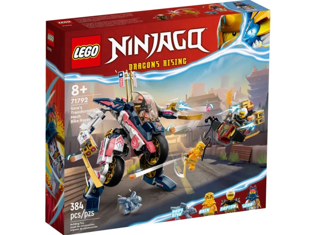 - Motorobot LEGO® NINJAGO® – Stavebnice Sora a její transformační motorobot (71792) dětem od 8 let umožní znovu prožít scénu z televizního seriálu NINJAGO® Dračí povstání