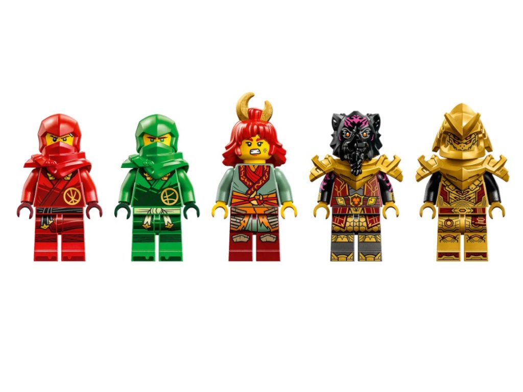 - 5 minifigurek – V této stavebnici z řady NINJAGO® najdete Kaie ozbrojeného 2 katanami, Wyldfyrea, císařského lovce s císařským mečem a lord Rase se zlatým kladivem