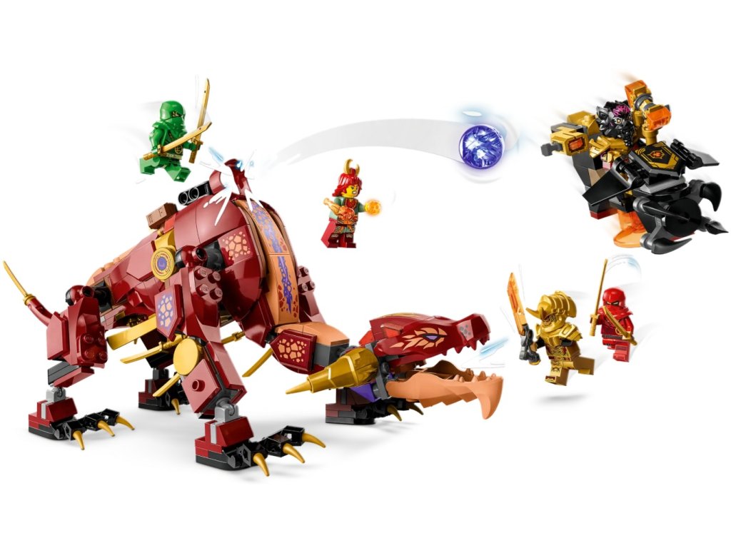 Fanoušci nindžů od 8 let si s herní stavebnicí Heatwave a jeho transformační lávový drak (71793) mohou přehrávat své oblíbené scény z televizního seriálu NINJAGO® Dračí povstání. Součástí je zcela nový drak se dvěma režimy. V mírumilovném režimu drak majestátně stojí, ale po obrácení vzhůru nohama se drak připraví k boji a může z hrudi střílet fialové dílky dračí síly.