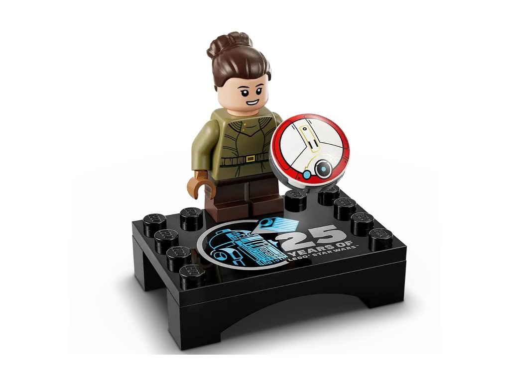 Součástí stavebnice je také speciální minifigurka LEGO Star Wars mladé princezny Leiy s droidem Lolou (L0-LA59) k 25. výročí a podstavec na vystavení.