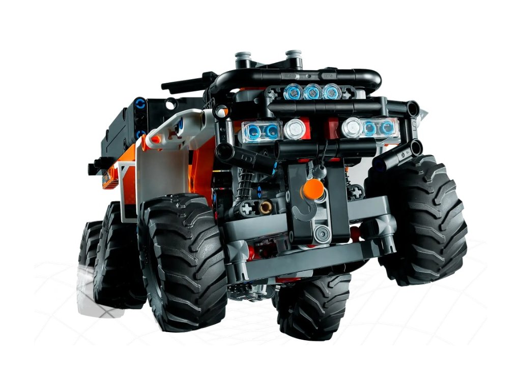 - Realistické funkce – Představujeme první repliku LEGO® Technic terénního vozidla se 6 koly, která zaujme spoustou autentických funkcí, jako je motor s pohyblivými písty a převodovka se 2 stupni (+ neutrál)