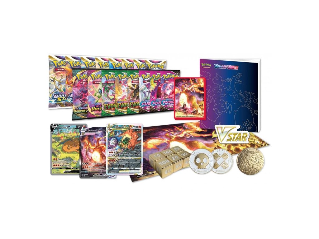 - 3 promo karty: Charizard V, Charizard VMAX a Charizard VSTAR