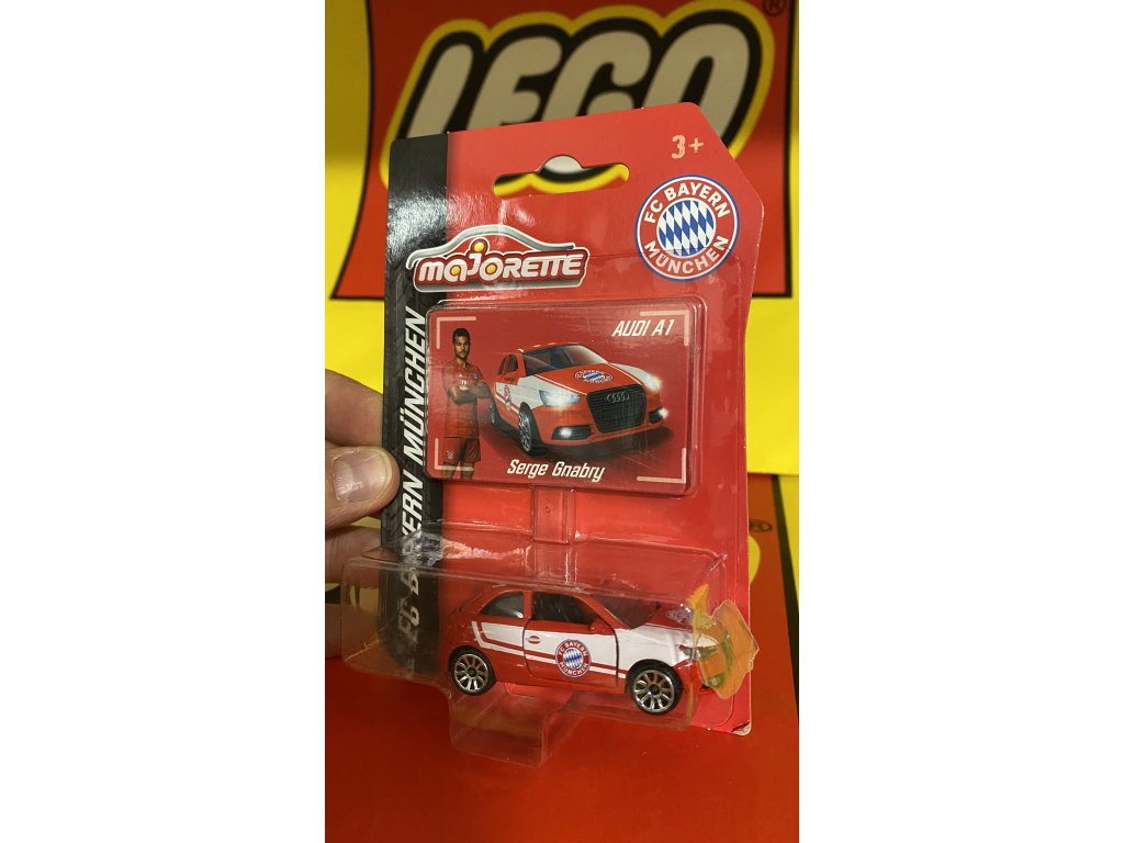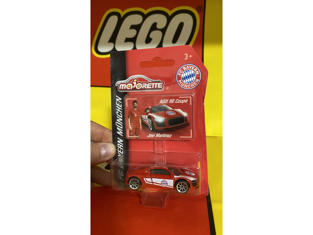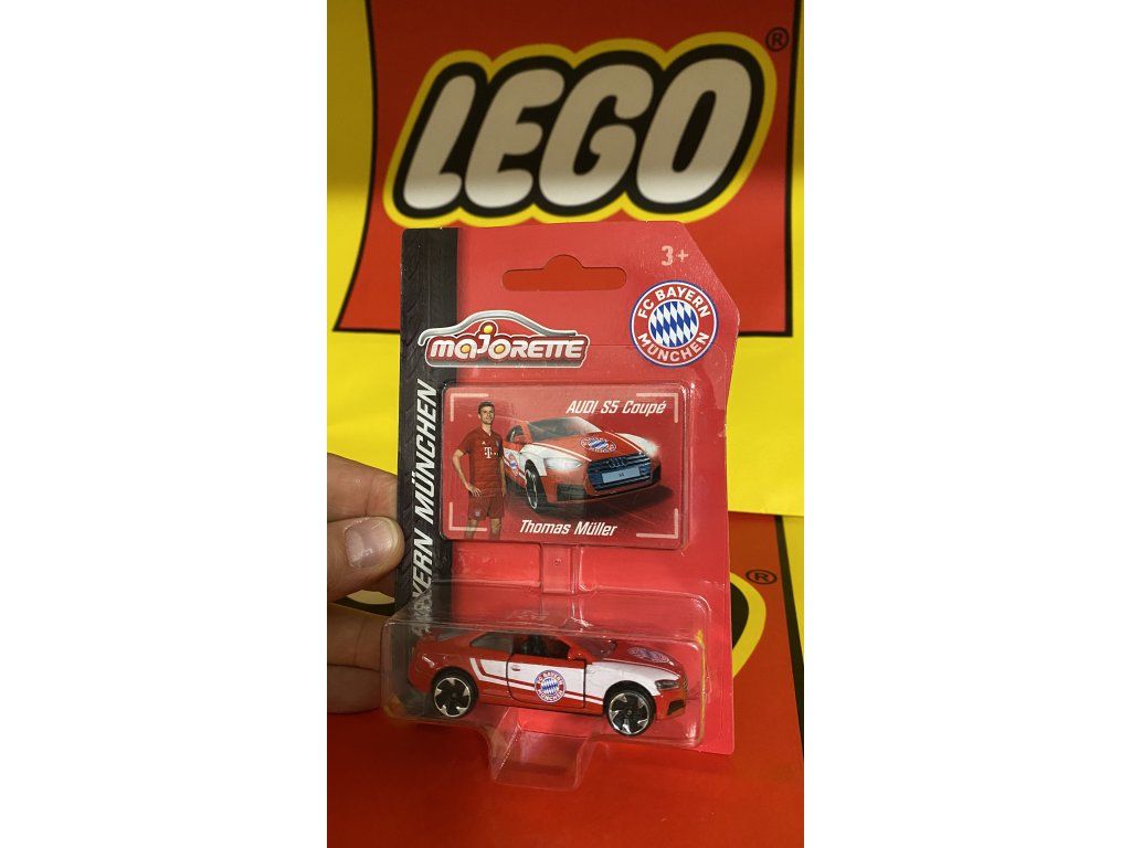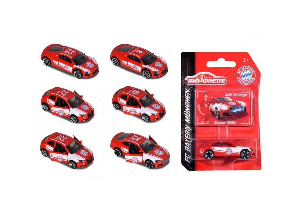 Kovové červené autíčko značky Audi v provedení FC Bayern. Mohli bychom prodávat autíčka SK Slavia nebo AC Sparta, ale to bychom zbytečně popudili jednu nebo druhou stranu, natož naše kamarády z Ostravy. Takže zahraničí to jistí.